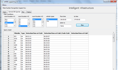 4. Filtering engine will show data you need (i.e. list of truck crossing two count locations during morning peak hour).